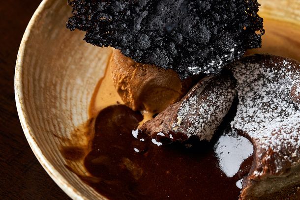 En Mago Parrilla, el volcán de chocolate es uno de los postres más solicitados de la temporada. La preparación llega a la mesa con un bizcocho oscuro y esponjoso, de corteza suave que esconde en su interior un corazón de ganache tibio y fundente. La intensidad del cacao se equilibra con una generosa bocha de helado artesanal de dulce de leche, cremoso y con notas acarameladas que refrescan cada bocado. Como broche final, una cookie casera de cacao corona la propuesta y suma ese contraste crocante que realza el juego de texturas. Más allá de este postre icónico, la parrilla se consolida como un punto de referencia para quienes buscan carnes de primer nivel y una carta de vinos seleccionada con esmero, que recorre distintas regiones del país.