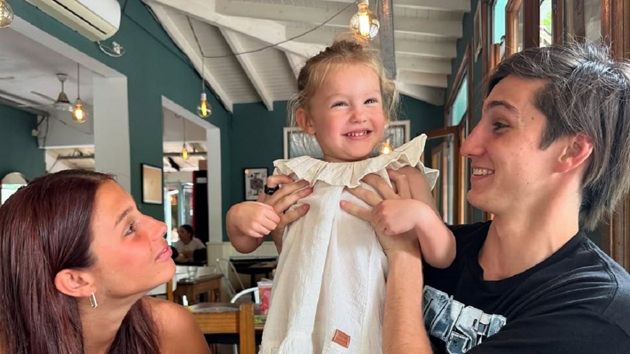 A su lado, Sarah Burlando, hija de Barby Franco y Fernando Burlando, también deslumbró con un look inspirado en el estilo Chanel. Llevó una chaqueta de tweed en tonos negro y beige con moños en el frente, pantalones negros y zapatos a juego. Su peinado semirrecogido con un moñito completó un conjunto que combinó sofisticación y dulzura.