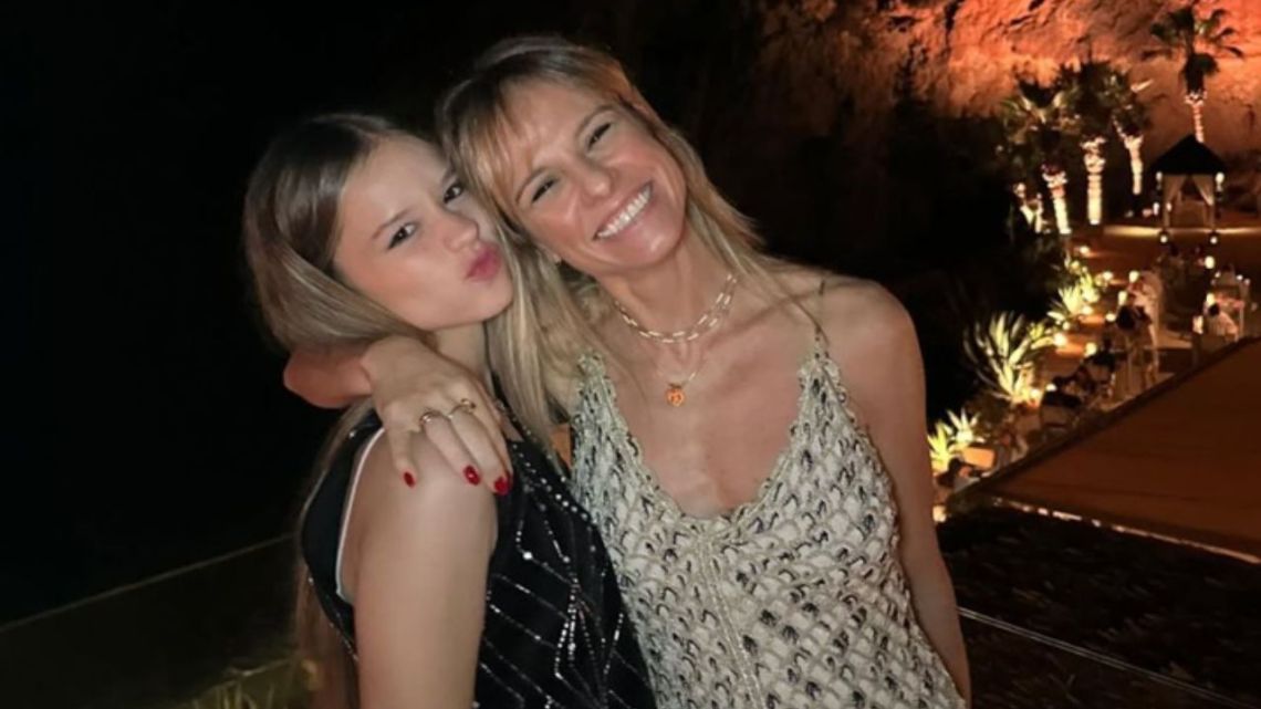 La adolescente, por su parte, fue la verdadera protagonista. La joven lució un vestido de tul bordado con hilos de plata y un delicado diseño de hojas, que resaltó su frescura y juventud. Los detalles en la falda evasé y los breteles finos le aportaron movimiento y ligereza, mientras que el cabello suelto en ondas marcó el equilibrio entre lo romántico y lo moderno, al igual que su madre. Su sonrisa al ingresar al salón fue el mejor reflejo de la felicidad que irradió toda la noche.