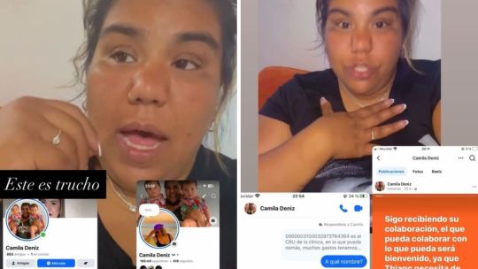 Camila Deniz denunció en su cuenta de Instagram que hay una cuenta falsa a su nombre que pide plata supuestamente para solventar los gastos médicos de su hermano Thiago Medina.