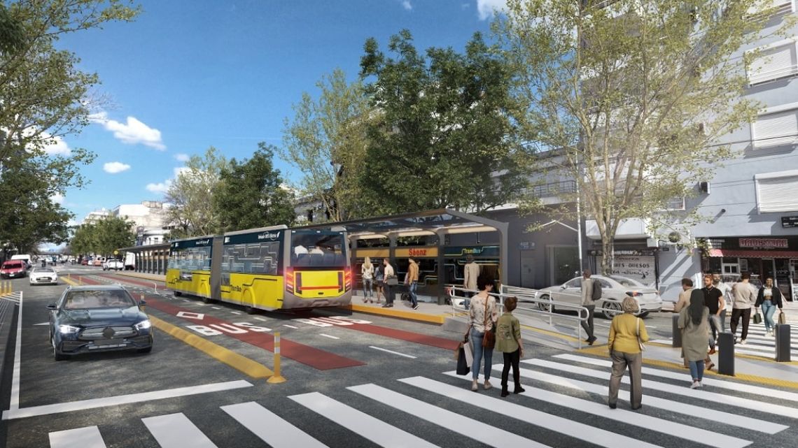 Los primeros cinco micros comenzarán a circular por el corredor de doce kilómetros del Metrobús que recorre la avenida Juan B. Justo, y que ya cuenta con la infraestructura necesaria en su traza de 18 kilómetros que unirá Liniers con Aeroparque.