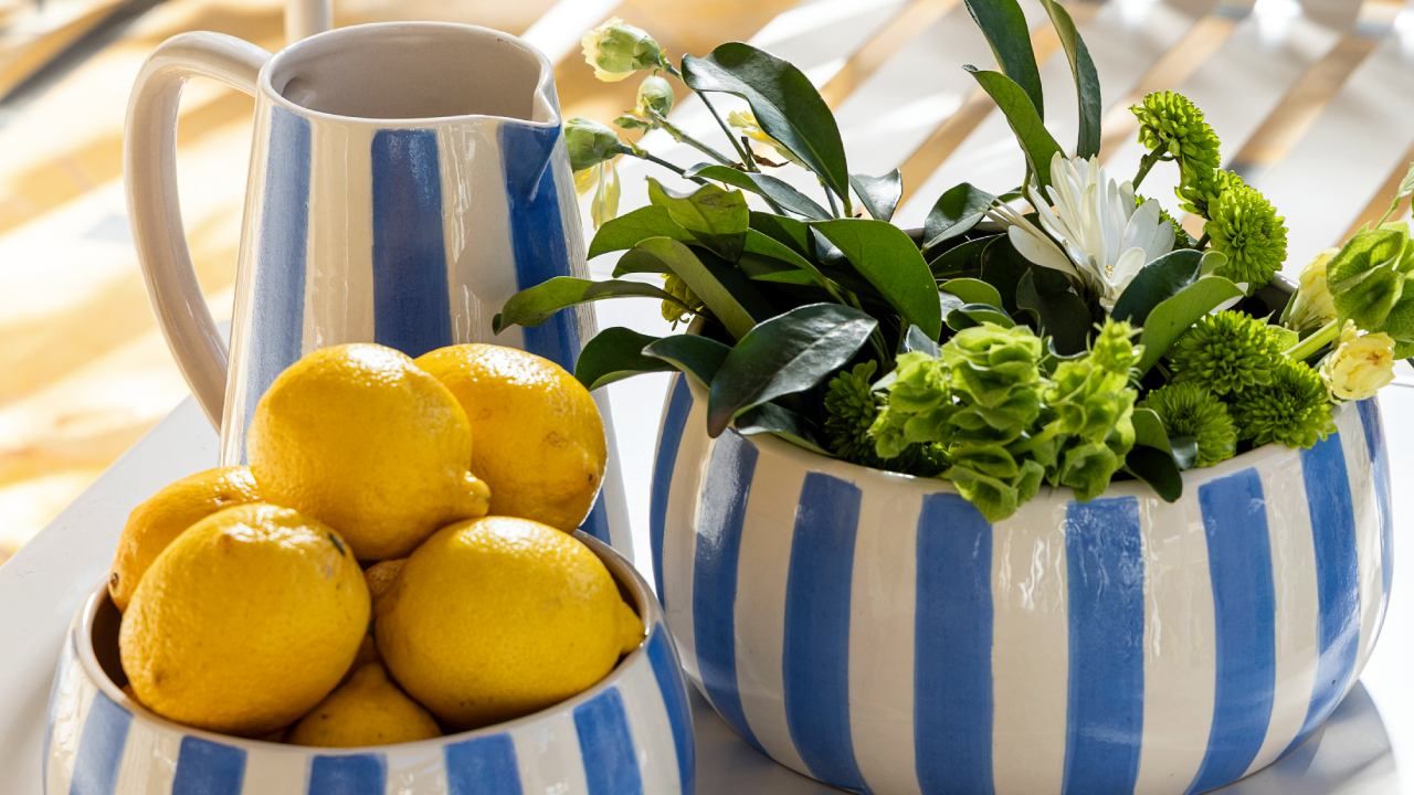 El Earthy veraniego se define por lo que no retiene: no atrapa calor, no encandila, no satura. Lino en la mesa, fibras en sillas y pantallas, cerámica artesanal en bowls, jarras y fuentes. Centros de mesa con ramas, frutas o flores de estación. La idea es clara: frescura sin frialdad. AltoRancho lo sugiere con vajilla sobria y cerámica de tonos cálidos: si esas piezas operan como “capas” dentro de un conjunto personal —y no como set cerrado—, el resultado es sereno y actual.