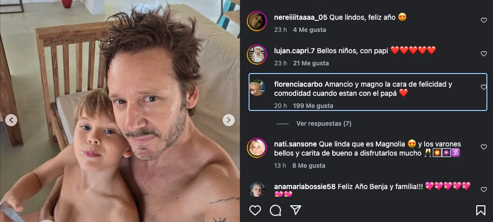 “Bellos niños, con papi”, “Amancio y magno la cara de felicidad y comodidad cuando están con el papá”, “Esos pequeños si saben de infancia real”, “Los niños se ven más niños y reales junto al padre” y “Qué bueno los chicos están con vos. No te conozco, pero en esta te banco. Felicidades”, fueron algunos de los tantos comentarios bancando a Vicuña.