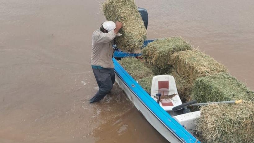 Posteriormente, los equipos avanzaron con el rescate en los sectores donde las condiciones lo permiten. “Se están sacando animales solamente en las orillas del río Marapa y del arroyo Matazambi, que son los únicos lugares donde todavía se puede circular. Con lanchas recorremos esos sectores y vamos rescatando ovejas y cabras que están a la vera del agua”, indicó Castro.