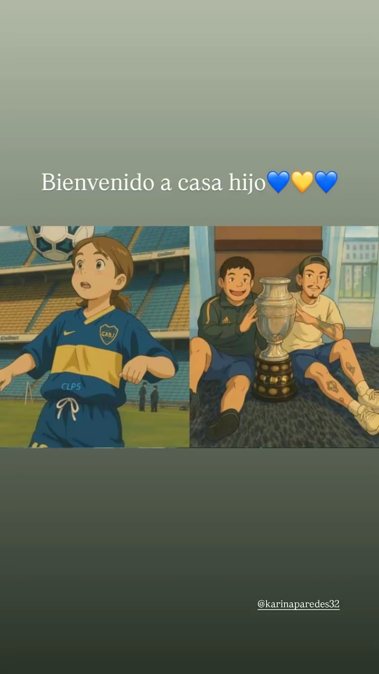 De un lado, un pequeño Leandro con la camiseta azul y oro y del otro, el jugador consagrado, con la Copa América bajo el brazo, regresando a la Bombonera como ídolo. La imagen fue acompañada por una frase simple pero poderosa: “Bienvenido a casa, hijo”, junto a corazones azules y amarillos.