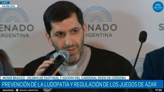 El cura cordobés Munir Bracco advirtió en el Senado que «la camiseta de fútbol se convierte en publicidad de una droga» y denunció una «pandemia silenciosa» de ludopatía. La AFA, entidad que preside Claudio Tapia, rechazó la prohibición total y alegó que pondría en riesgo la sustentabilidad de los clubes.