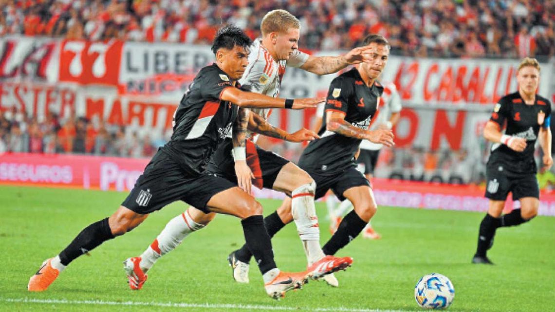 Es cierto, River acumuló argumentos para empatar, y de hecho empató con un cabezazo de Paulo Díaz en el final del primer tiempo, pero la juez de línea vio offside –finísimo, pero correcto– y el VAR convalidó. Es cierto también que River pudo haber empatado varias veces más: con una pirueta de Driussi, con un tiro de Mastantuono que tapó Mansilla o con un tiro libre de Meza que se fue alto. Ninguna clarísima, ninguna demasiado elaborada: todo una síntesis de lo que sucede con este River de Marcelo Gallardo, un equipo que promete mucho más de lo que finalmente concreta en cada partido.