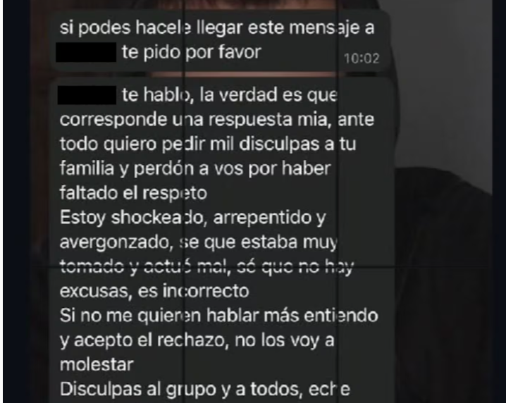 Cuando fue confrontado por la familia, el joven reconoció lo ocurrido y dijo que estaba borracho, aunque el denunciante remarcó que eso “no justifica ni minimiza el abuso”. Tras el episodio, el joven cerró sus redes sociales y le pidió perdón a su amigo de la infancia.