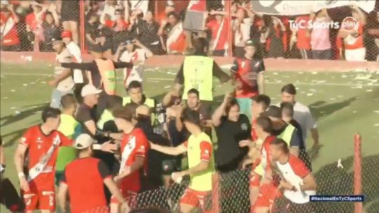 Los hinchas de Deportivo Maipú invadieron la cancha para pegarle a los jugadores