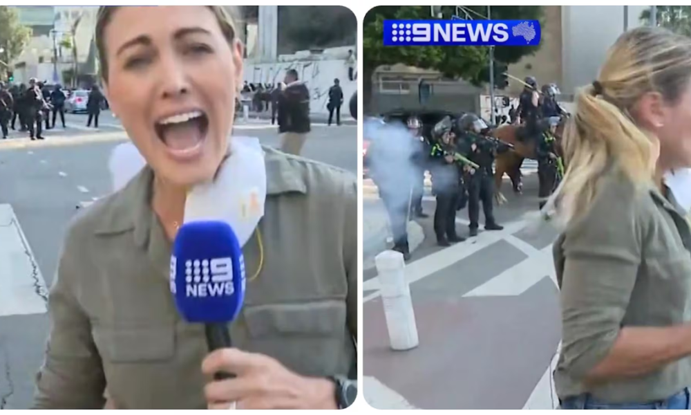 🚨 EN VIVO: una policía le disparó a una periodista australiana durante una protesta violenta en Los Ángeles. pic.twitter.com/XV4vokBumc