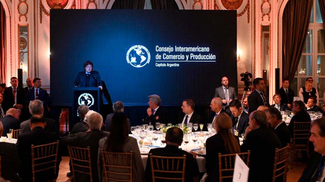Relativizan las definiciones económicas sostenidas por Javier Milei en el Consejo Interamericano de Comercio y Producción