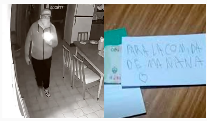 Finalmente, le dejaron un mensaje a la mujer asaltada y se escaparon del lugar con $100.000 en efectivo, un televisor, joyas y algunos dispositivos electrónicos. La nota, junto con un billete de 500 pesos, decía: “Para la comida de mañana”.
