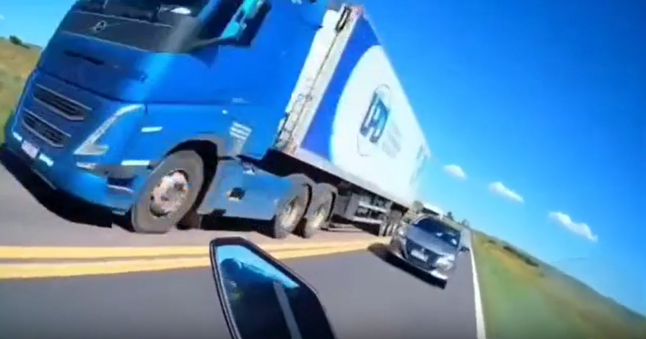 Fue el propio conductor de la moto, oriundo de La Pampa, quien publicó el video a sus redes sociales y muestra cuando casi es embestido en la Ruta Nacional 35, cerca de Santa Rosa.