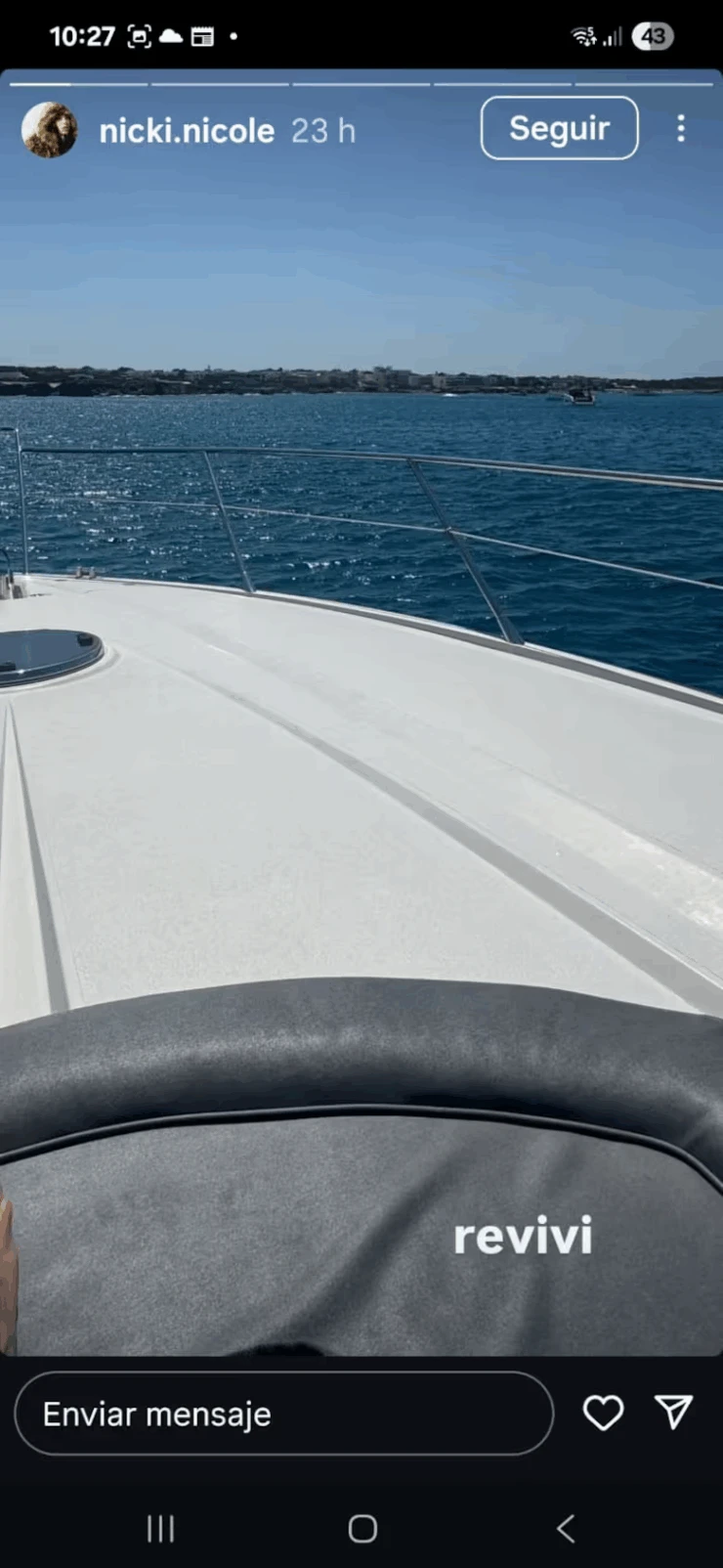 Lejos de aclarar o desmentir los rumores, ambos eligieron el silencio… aunque con señales que alimentan el fuego. En una de sus historias, Nicki se filmó cantando “Bésame mucho” mientras navegaba, gesto que muchos interpretaron como una indirecta romántica.